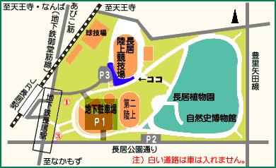 地下鉄御堂筋線 「長居駅下車」 1番または3番出口より徒歩